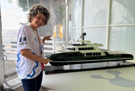 “Esse barco tem o futuro brilhante porque navega pelas águas usando o hidrogênio, uma energia que não causa danos à natureza”, destaca Joana Acácio, medalhista de ouro na Olimpíada Nacional de Eficiência Energética.