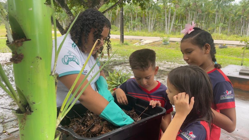 Com suporte do Instituto Mondó e Hope Aceleradora de Ideias na maratona de inovação social Mais Marajó, Yasmin Soares lidera um projeto de compostagem que transforma resíduos orgânicos em adubo e incentiva hortas e práticas de educação ambiental nas escolas. (Foto: Arquivo / Instituto Mondó)